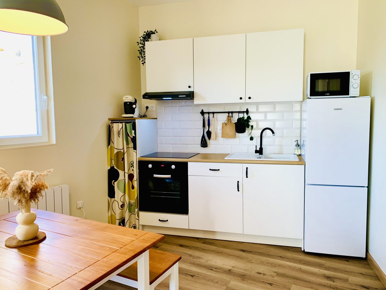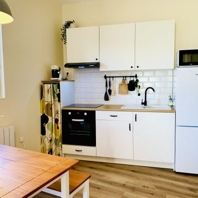 La maisonnette, est composée d’une spacieuse pièce de vie comprenant une cuisine fonctionnelle, une salle à manger et un salon de détente avec TV. Le gîte dispose d’une grande chambre côté jardin avec vue sur le coucher du soleil et d’une petite chambre côté cour avec dressing.